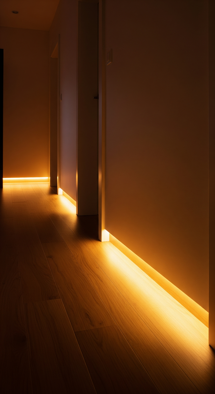 Install LED strips along baseboards or floor skirting for a soft guiding light at night.