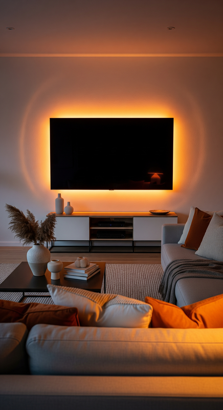 Add soft backlighting behind your TV to reduce glare and create a cinematic effect.
