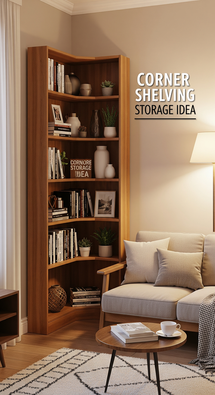 Transform unused corners into functional storage areas with corner shelving units. These compact shelves are great for holding books, décor, or even bathroom accessories.