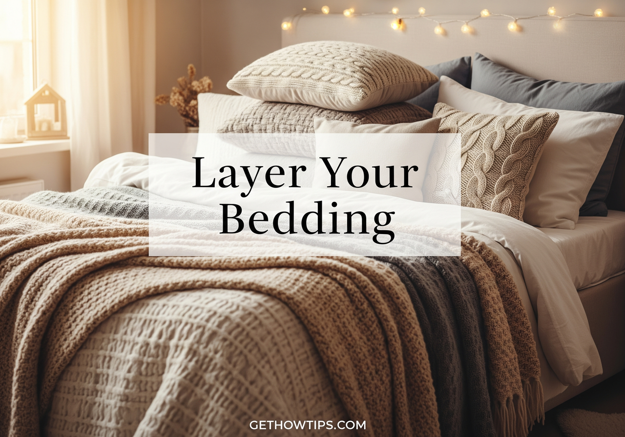 Swap light sheets for flannel or fleece and add an extra comforter or blanket for added warmth and texture.