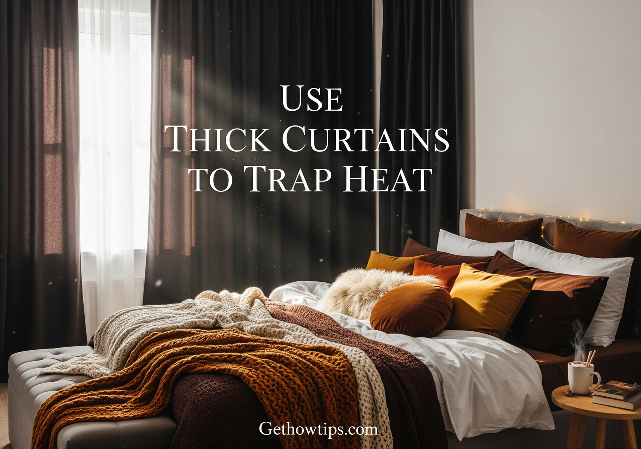 Heavy, insulated curtains help block cold drafts from windows and keep the warmth inside. Choose dark-colored fabrics for better heat retention.